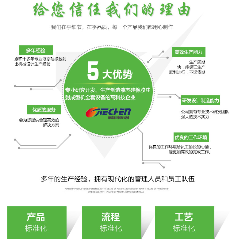 东莞市捷晨硅橡胶机器无限公司是一家专业研讨开辟、出产制作液态硅胶机、液体硅胶机、液体硅胶打针成型机、液态硅胶射出机、液态硅胶送料机、液态硅胶供料机等液态硅橡胶射出成型机全套装备的高新手艺企业。出产的液态硅橡胶射出机普遍用于医疗、母婴、情味用品、汽车配件、电子配件、文具、餐厨、潜水、卫浴等范畴,并研发出微量紧密液态硅橡胶射出机,智能紧密液态硅胶供料机,全方位知足差别客户的各类需要。接待来电详询:189-2556-0965